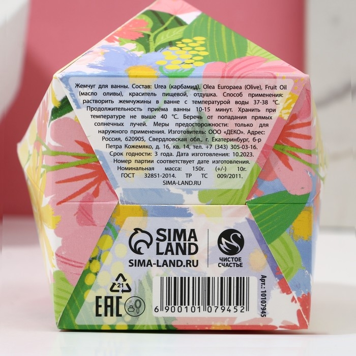 Жемчуг для ванны «С 8 Марта!», 150 г, аромат весенних цветов, ЧИСТОЕ СЧАСТЬЕ