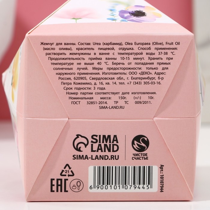Жемчуг для ванны «Самой прекрасной!», 150 г, аромат цветочного букета, ЧИСТОЕ СЧАСТЬЕ