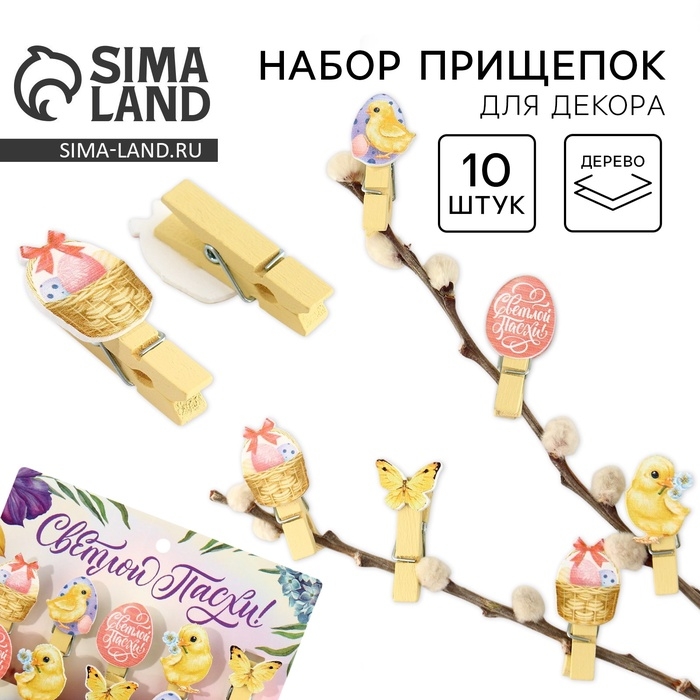 Набор прищепок для украшения вербы «Светлой Пасхи!», 10 х 12 см.