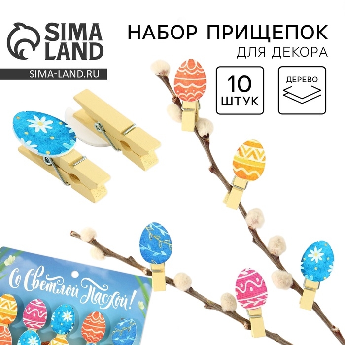Набор прищепок для украшения вербы «Со Светлой Пасхой!», 10 х 12 см.