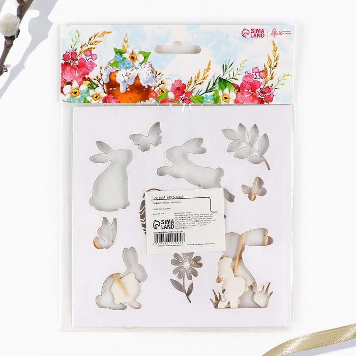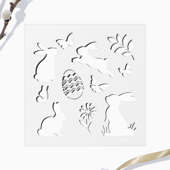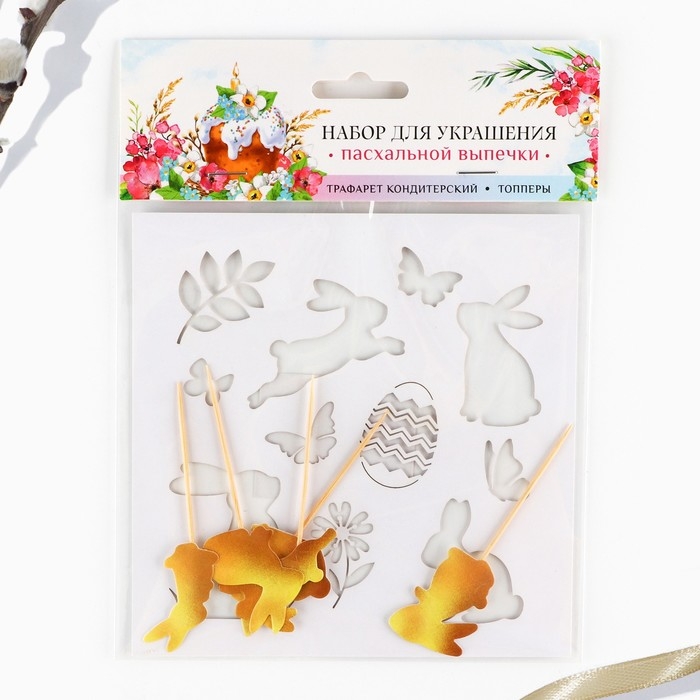 Трафарет для украшения пасхальной выпечки в наборе с топперами «Зайки» на пасху.