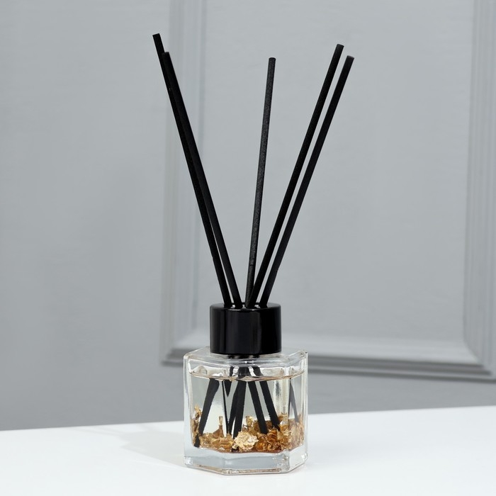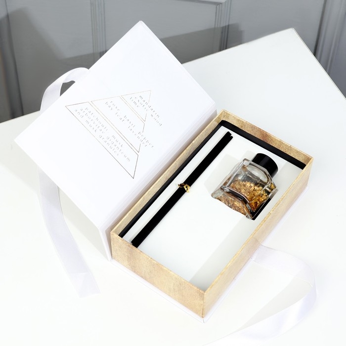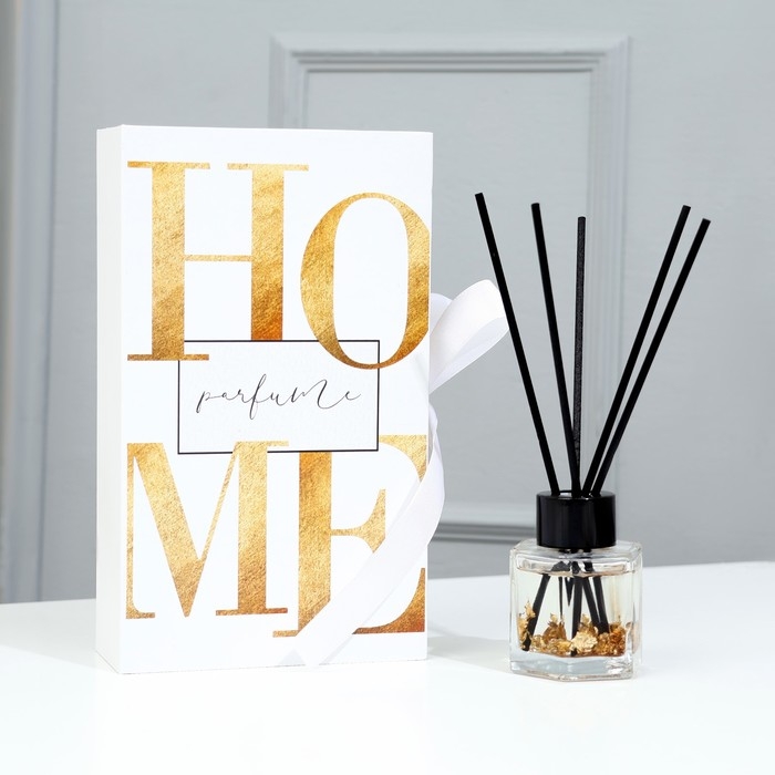 Представьте: вы открываете стильную черную коробку с нежным розовым бантом. Внутри - элегантный диффузор для дома «Home» от SEE YOU HOME, который наполнит ваш дом ароматом чёрного льда. Диффузор выполнен в виде стеклянной бутылочки с черной крышечкой, украшенной палочками из дерева, внутри флакона находится золото, которое придает изысканность.