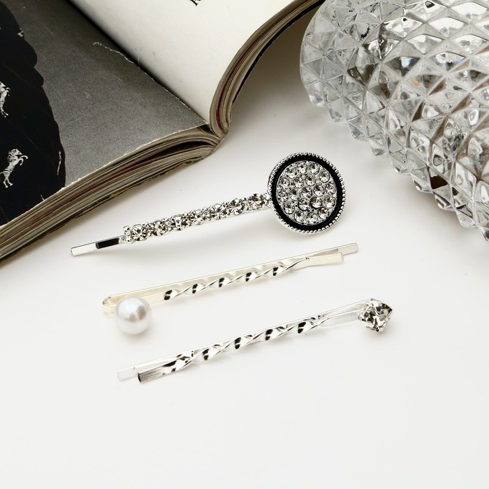Невидимка для волос "Альтаир" (набор 3 шт) круг, 5,5 см, серебро