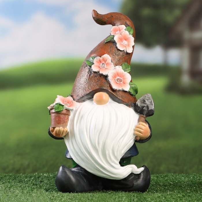 Садовый фонарь "Гномик садовод" 13х16х27см