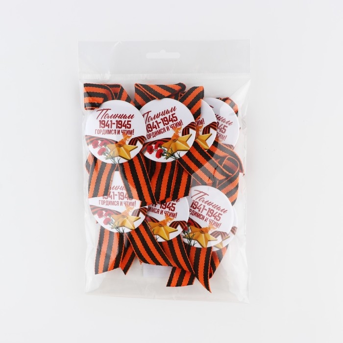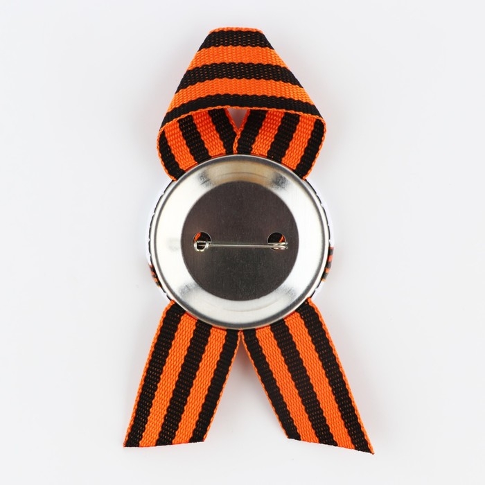 Георгиевская лента - главный атрибут и символ Дня Великой Победы. Ленточка дополнена металлическим значком-орденом с эксклюзивным дизайном. Изделие крепится с помощью булавки. Диаметр значка составляет 5,6 см.