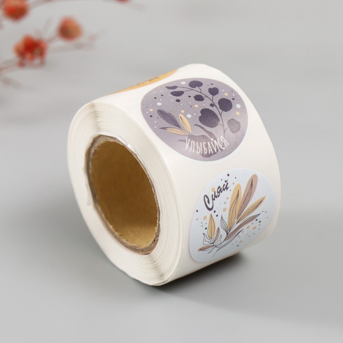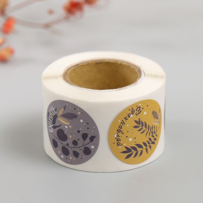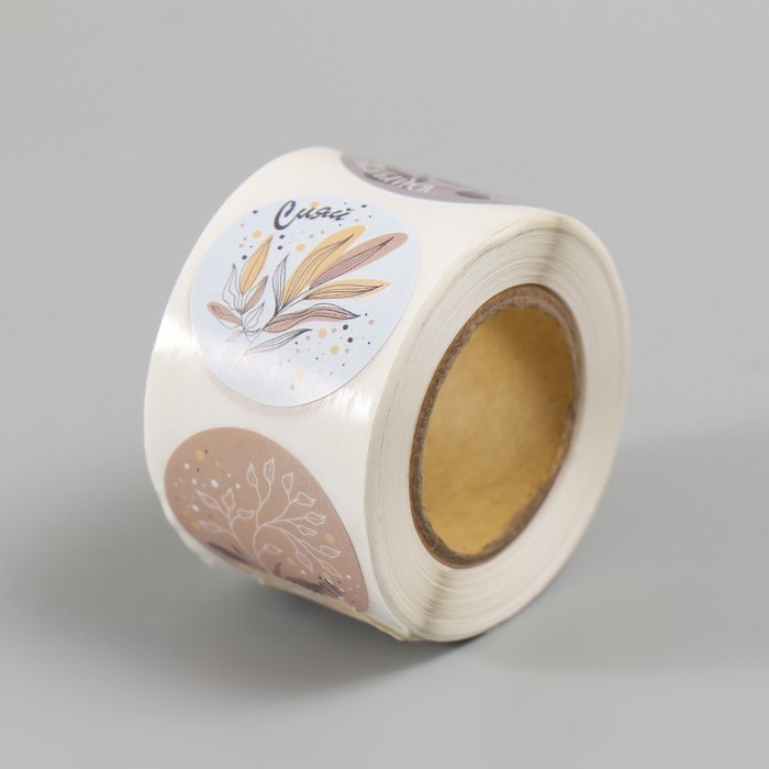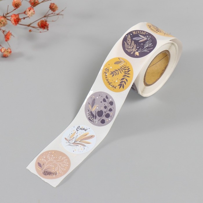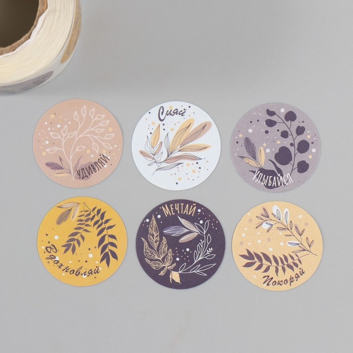 Наклейка бумага "Листья. Бохо" d=2,5 см 252 шт в рулоне