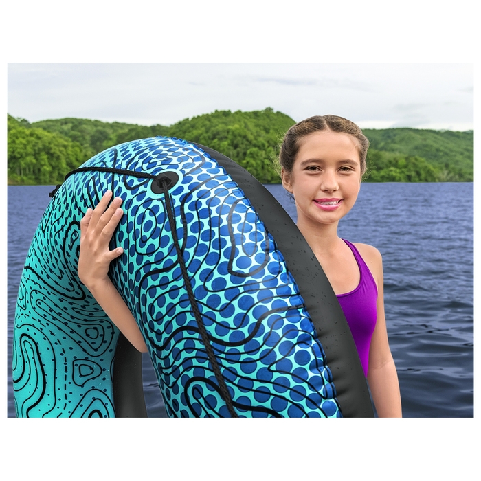 Надувной круг пригодится во время отдыха в бассейне или открытых водоёмах. Модель оснащена пластмассовыми ручками. В сдутом виде изделие занимает мало места, его удобно брать с собой на пляж. Яркий и привлекательный дизайн делает круг заметнее в воде.