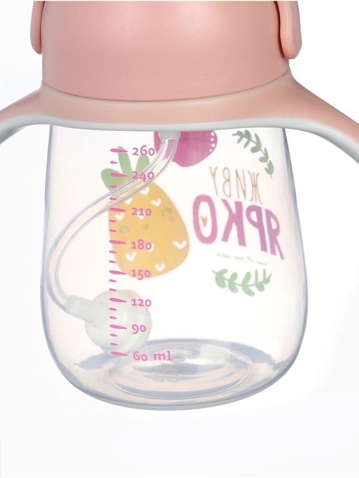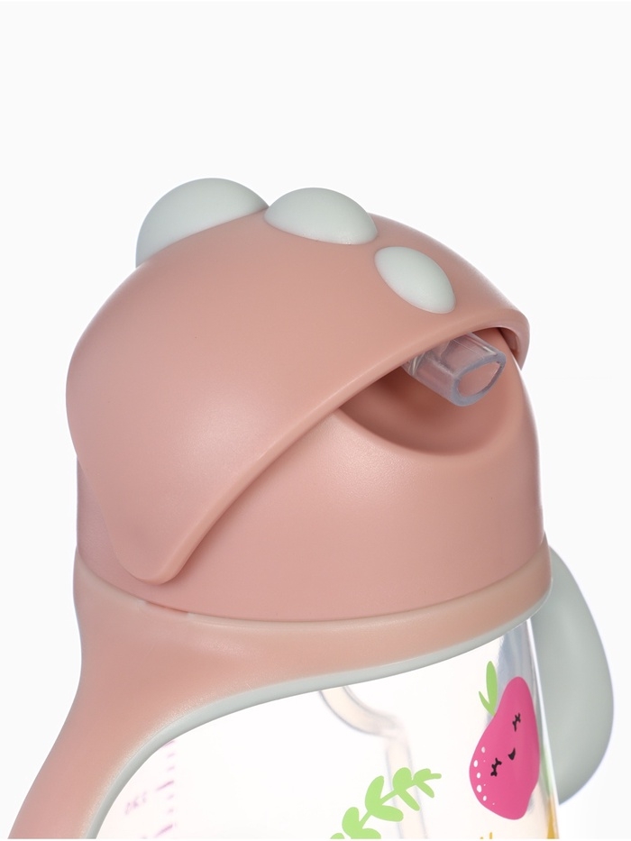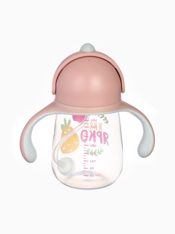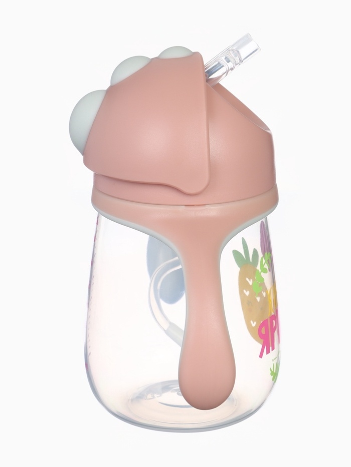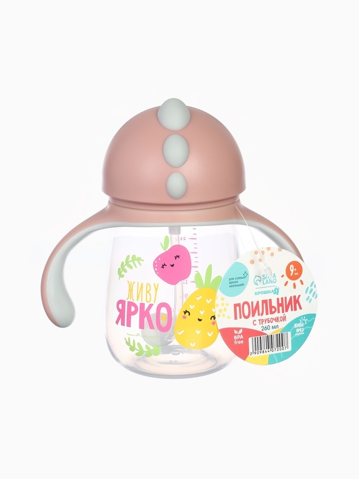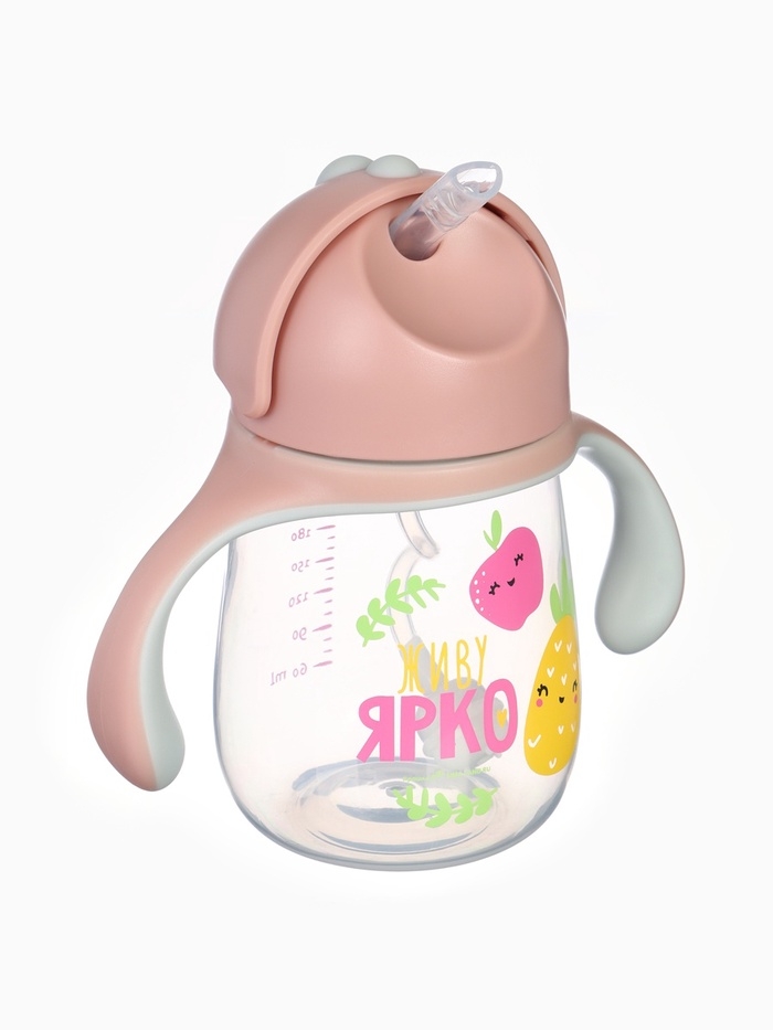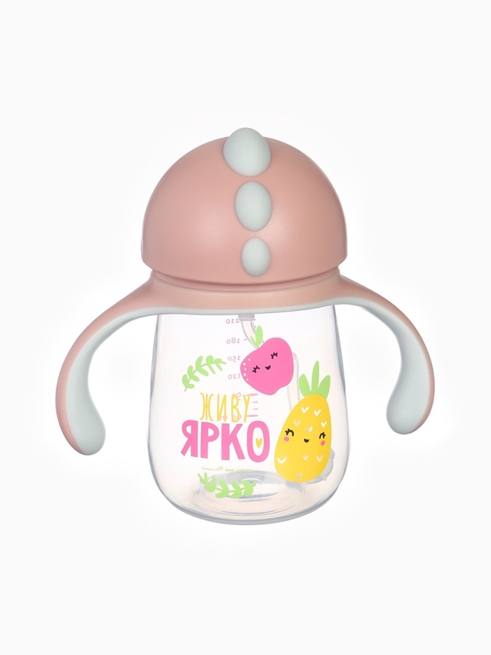 Поильник - непроливайка детский с силиконовой трубочкой «Фрукты», 260 мл., с ручками, розовый