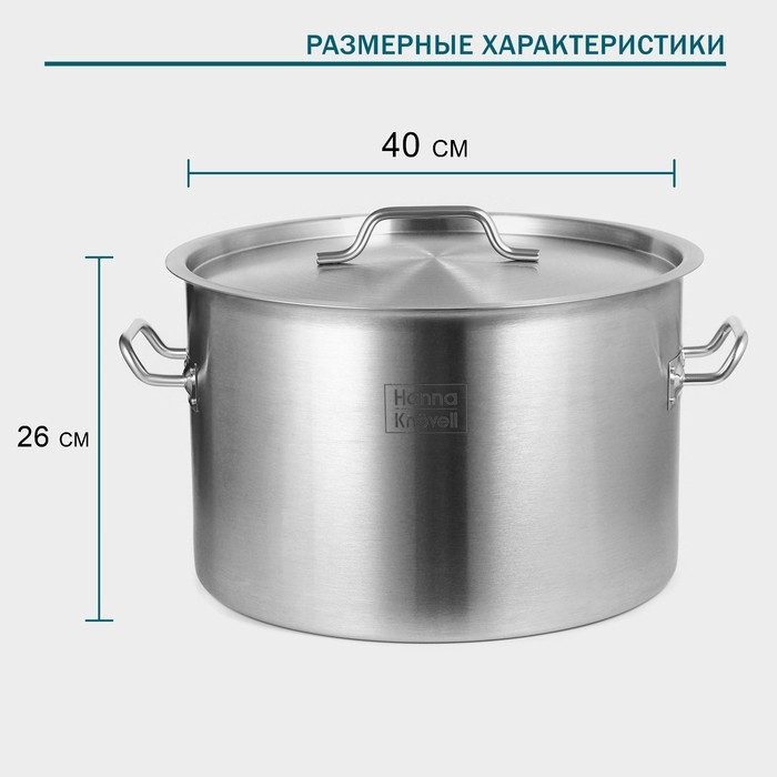 Кастрюля из нержавеющей стали Hanna Knovell, 35 л, d=40 см, h=26 см, толщина стенки 1 мм, металлическая крышка