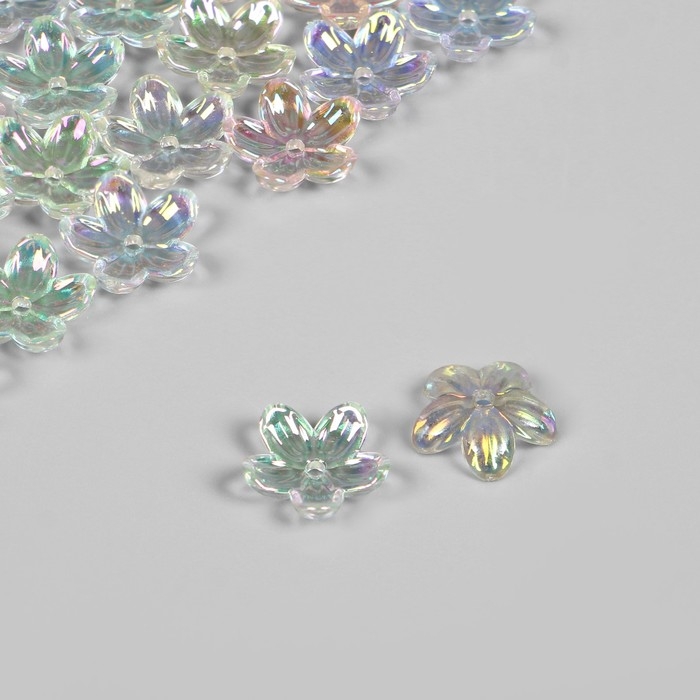 Бусины пластиковые «Цветы», 1,2×1,2×0,3 см, (набор 30 шт.), цвет радужный