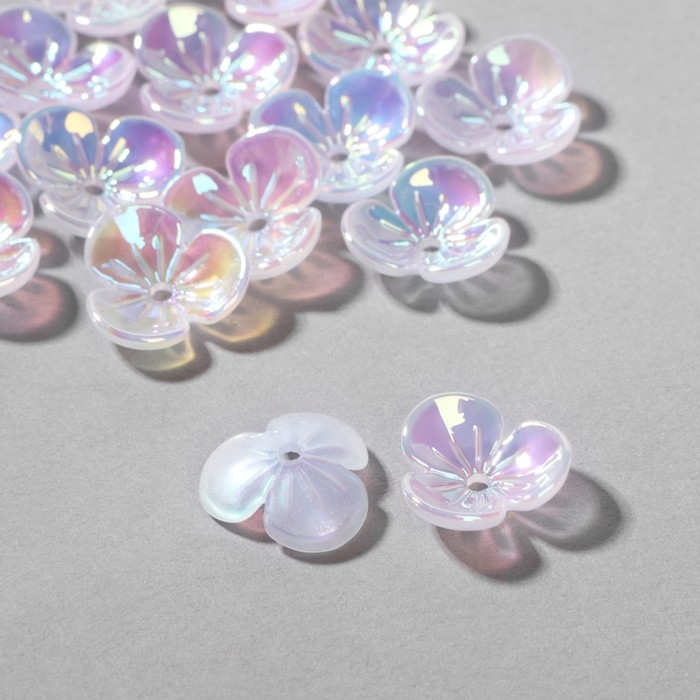Бусины пластиковые «Цветы», 1,2×1,2×0,2 см, (набор 30 шт.), цвет радужный