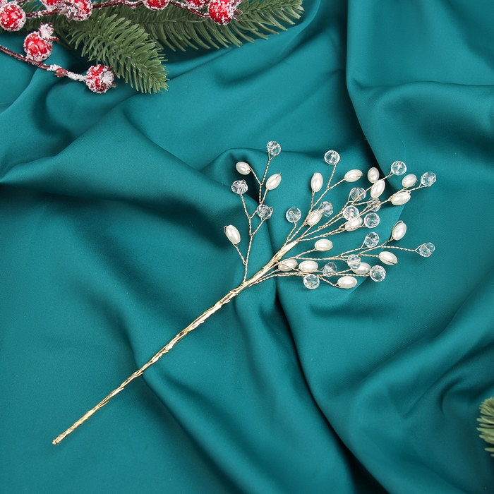 Новогодняя ветка декоративная «Зимнее волшебство. Хрустальная сказка», пластик, 25 см, веточка