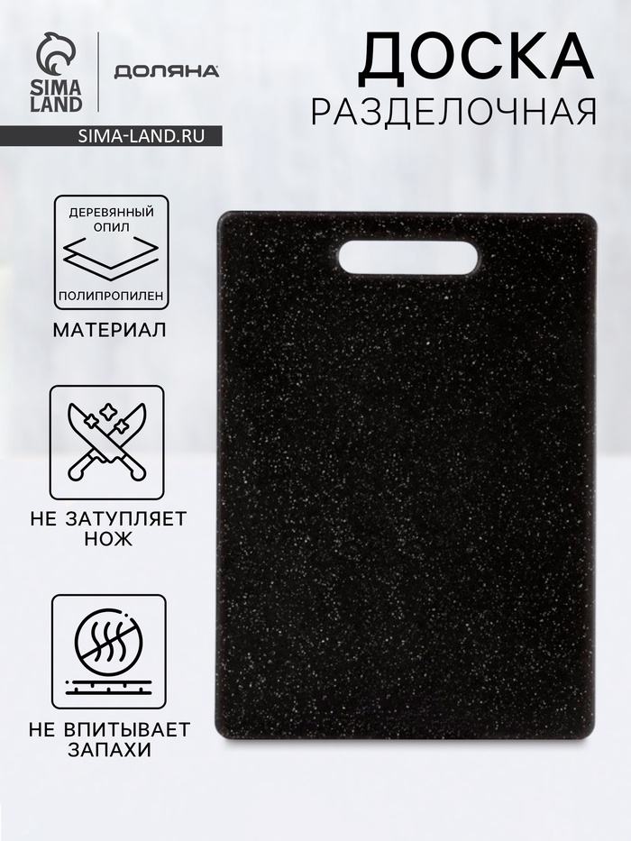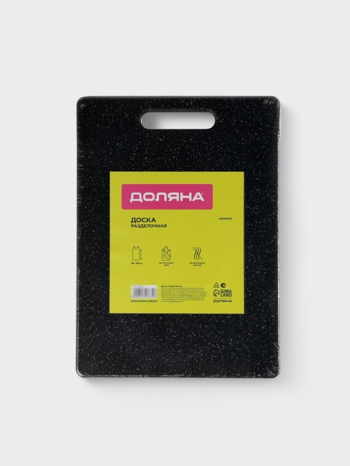 Доска разделочная Доляна «Морбио», пластик PP, 36×26×0.7 см, чёрная