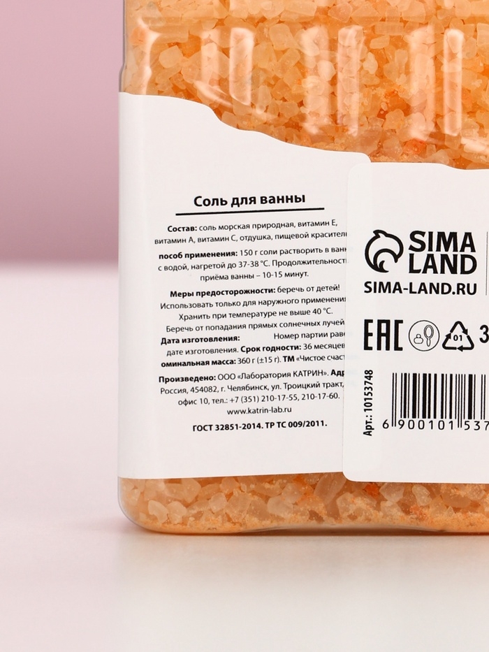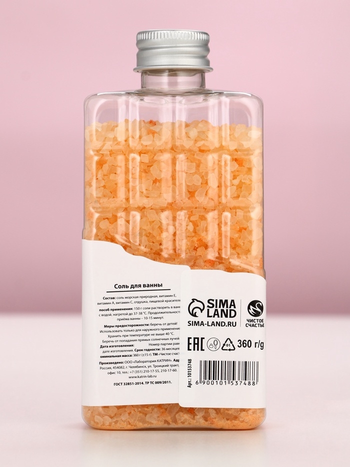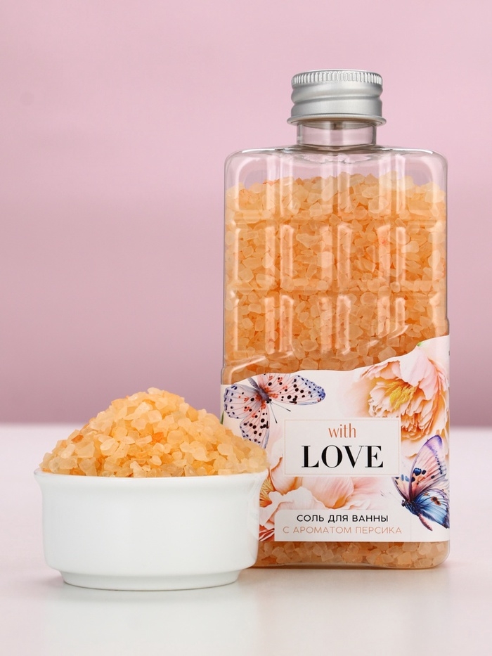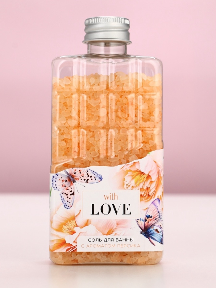Соль для ванны во флаконе шоколад «С любовью», аромат персика, 360 г, ЧИСТОЕ СЧАСТЬЕ