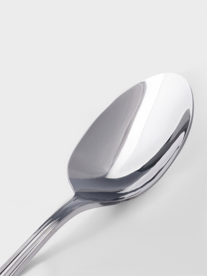 Ложка изготовлена из нержавеющей стали, что гарантирует её устойчивость к коррозии и сохранение первоначального вида на протяжении многих лет. Благодаря своей универсальности, она подходит для подачи различных блюд.