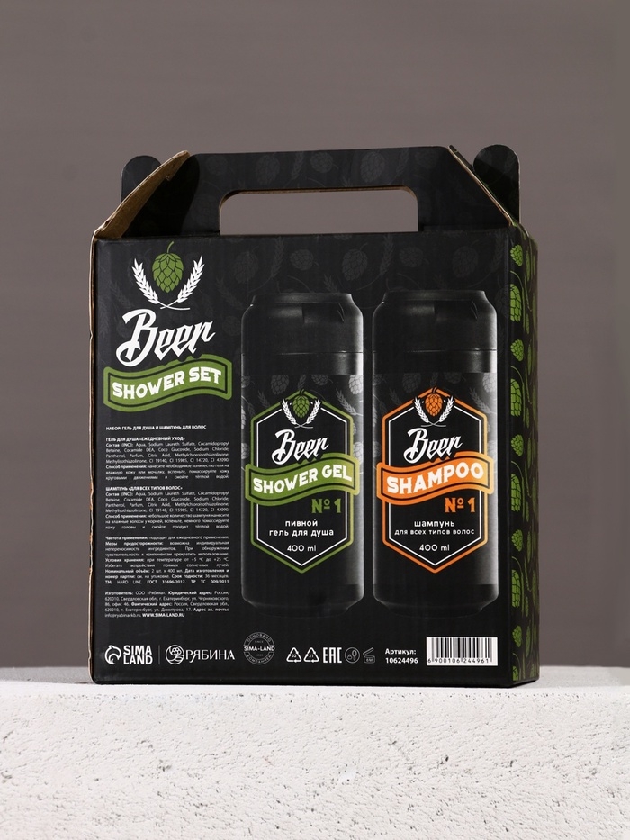 Подарочный набор косметики Beer, гель для душа и шампунь для волос HARD LINE, 2×400