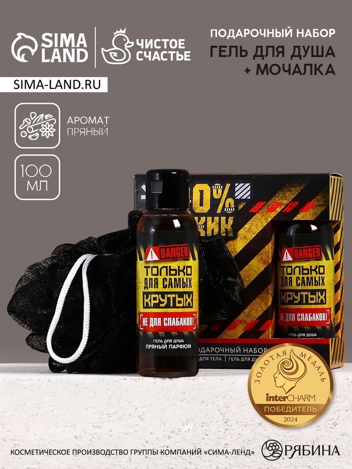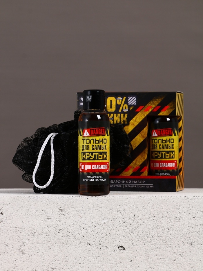 Подарочный набор ЧИСТОЕ СЧАСТЬЕ «23 февраля: 100% мужик», гель для душа и мочалка для тела, 100 мл