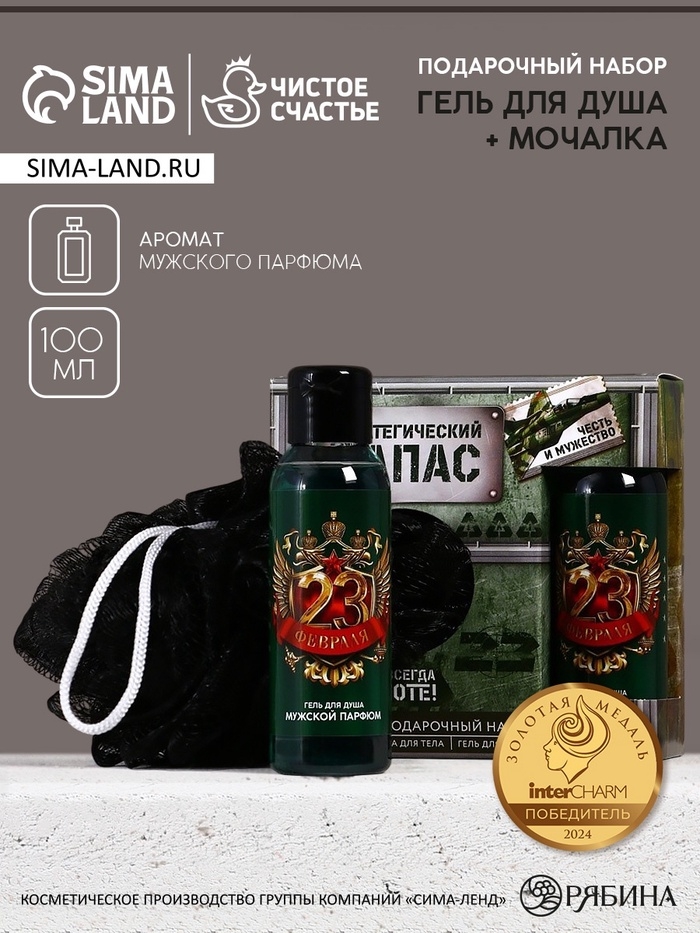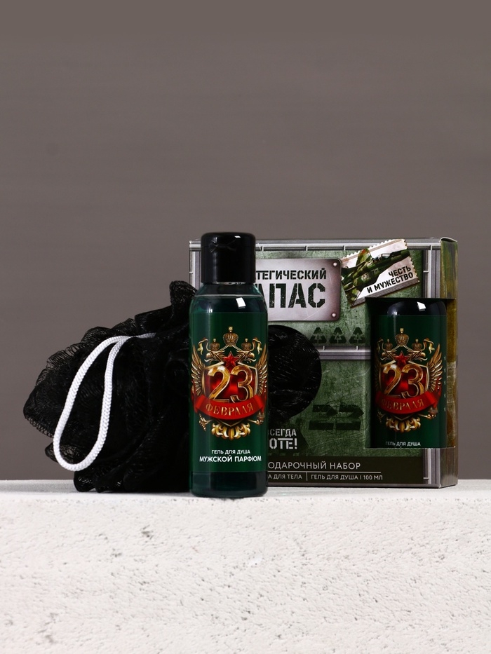 Подарочный набор ЧИСТОЕ СЧАСТЬЕ «23 февраля: Стратегический запас», гель для душа и мочалка для тела, 100 мл