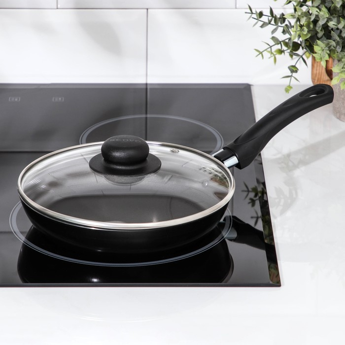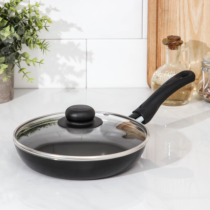 Сковорода Consul, d=20 см, стеклянная крышка, пластиковая ручка, антипригарное покрытие, цвет чёрный