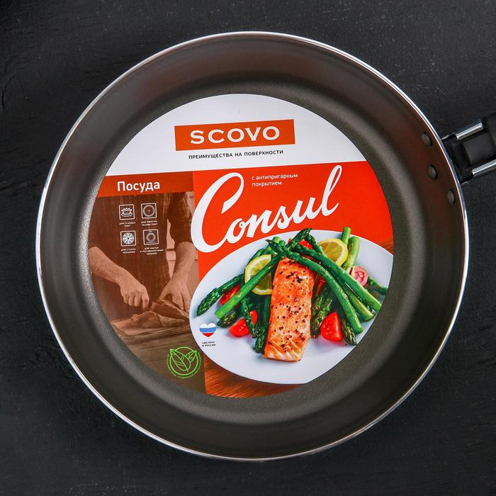 Сковорода Consul, d=22 см, стеклянная крышка, антипригарное покрытие, цвет чёрный