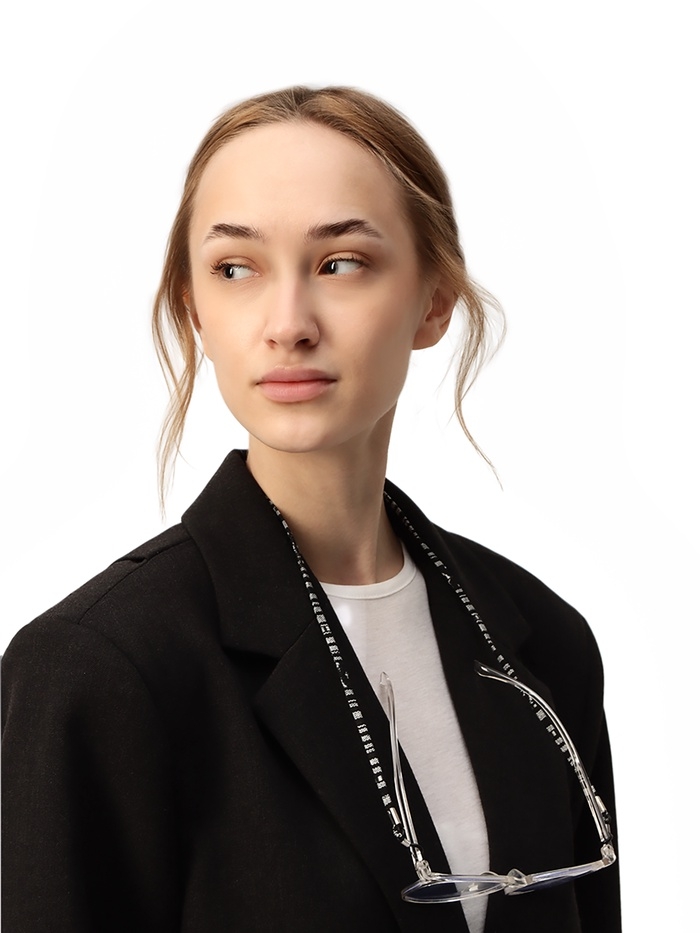 Особенности: длина: 70 см, прочный и гибкий материал, регулируемая длина для удобства, подходит для всех типов очков.