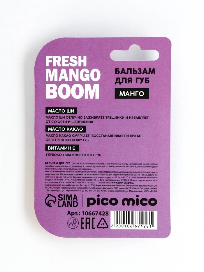 Бальзам для губ с ароматом манго, 3.5 гр