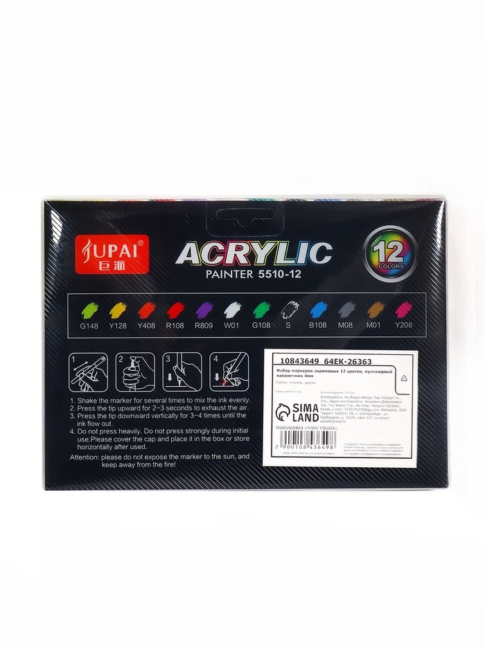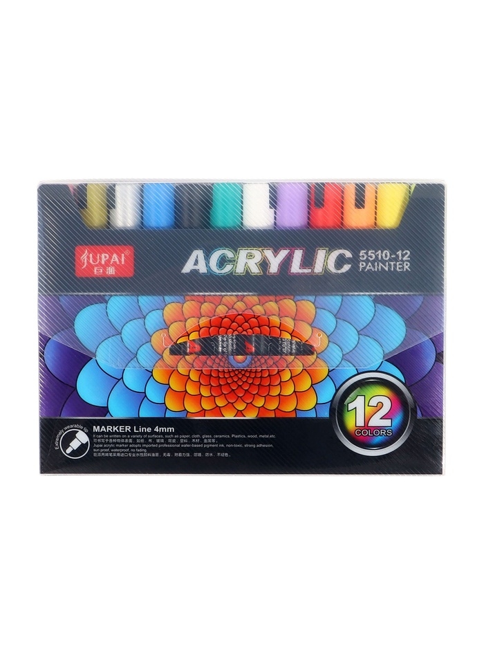 Набор маркеров акриловых 12 цветов, пулевидный наконечник 4мм