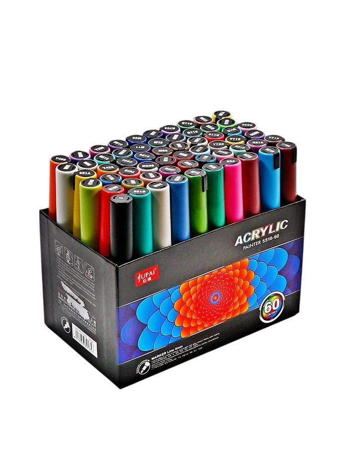 Набор маркеров акриловых 60 цветов, пулевидный наконечник 4мм
