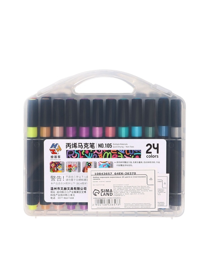 Набор маркеров акриловых 24 цвета в пластиковом пенале