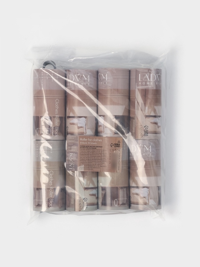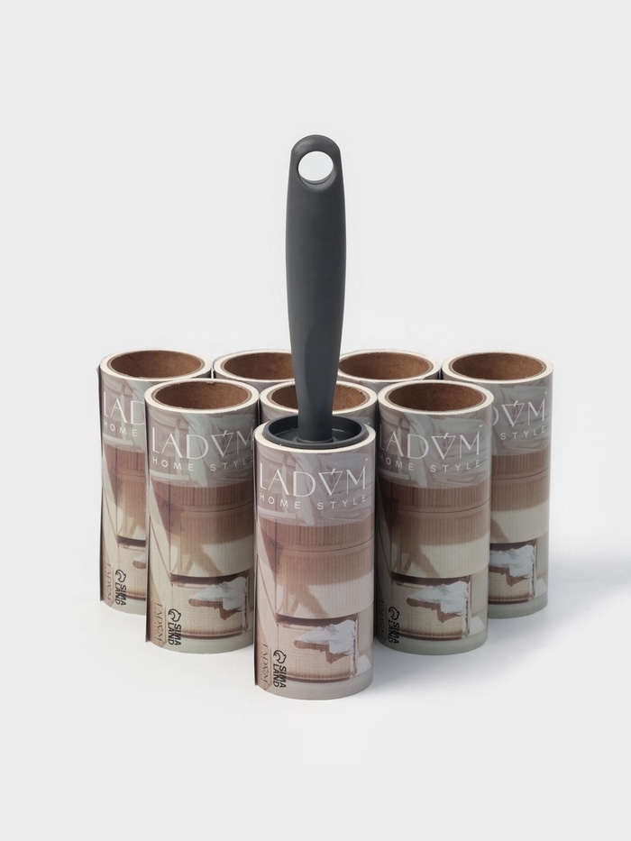 Ролик для одежды со сменными блоками LaDо́m, 8 шт по 50 листов, эргономичная ручка, винтовая намотка