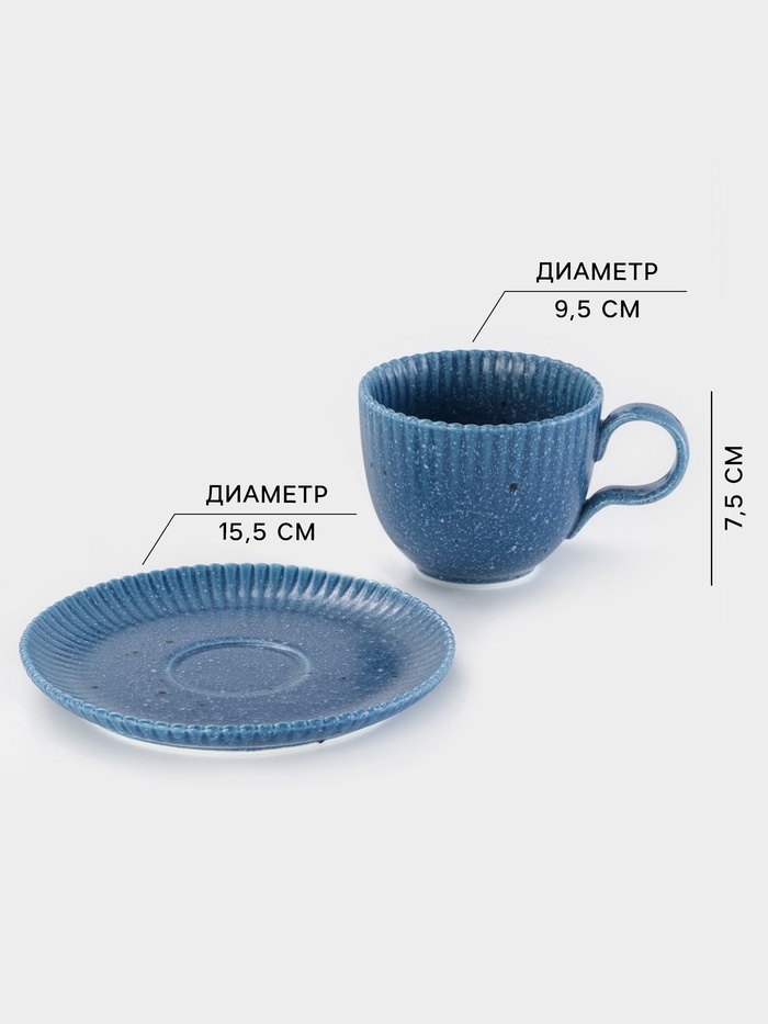 Чайная пара Доляна «Коралл», кружка 275 мл, блюдце 15.9×15.9 см, керамика, синяя