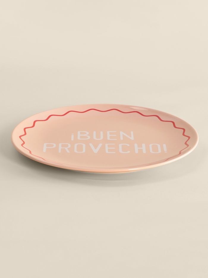 Тарелка для пиццы SL Home «Уроки испанского: Buen provecho», d=35 см, фарфор, розовая