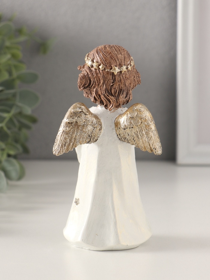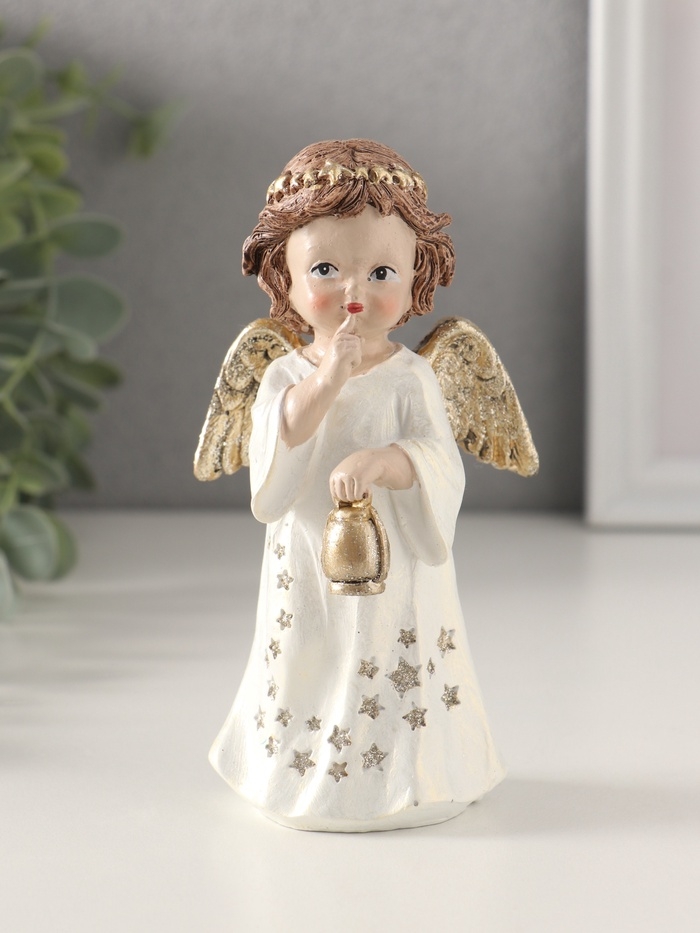 Сувенир полистоун "Ангелочек в платье со звёздами, с фонарём 7х5х13 см