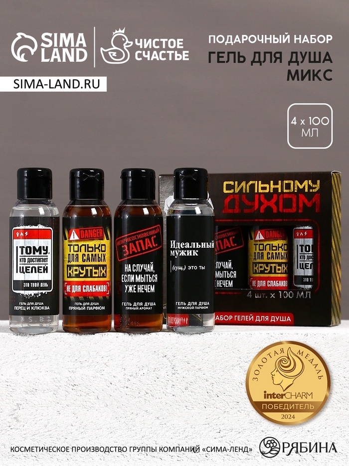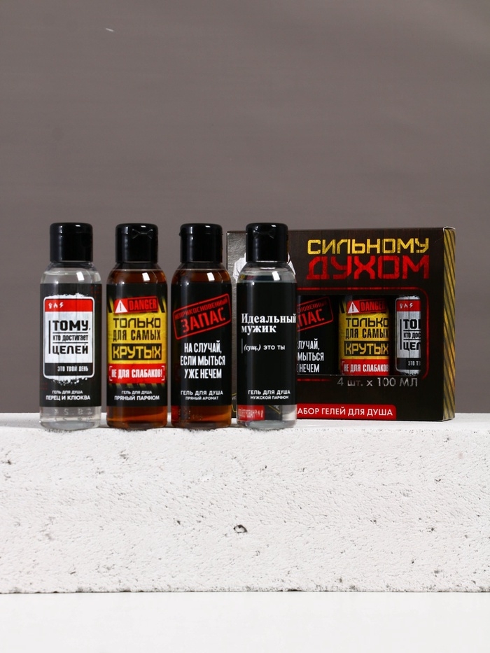 Подарочный набор ЧИСТОЕ СЧАСТЬЕ «23 февраля: Сильному духом» гель для душа, 4×100 мл