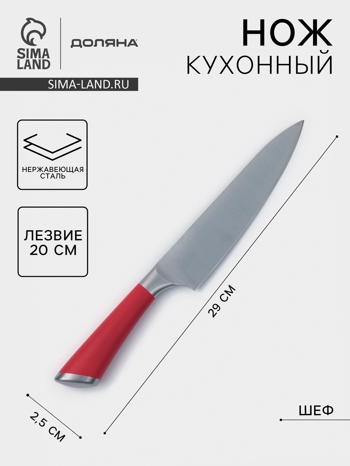 Нож кухонный Доляна Venus, шеф, лезвие 20 см, нержавеющая сталь, красный