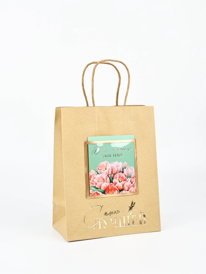 Пакет крафтовый с открыткой «Счастливых моментов», MS 18 × 10 × 23 см