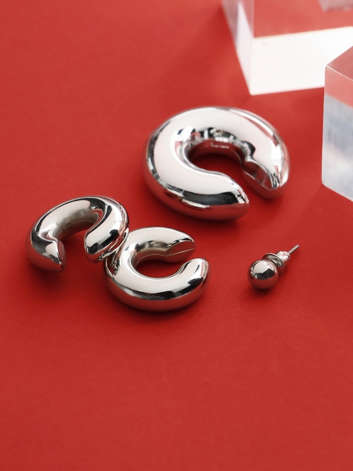 В набор входят четыре элемента, три из которых имеют плавные дуги, что создает невероятный визуальный эффект. Металлический материал, из которого выполнены серьги и каффы, обеспечивает прочность и долговечность, а их стильный дизайн придаст вашему стилю неповторимые нотки. Специальная застёжка позволяет носить эти аксессуары без прокола, что делает их доступными для любой женщины.
