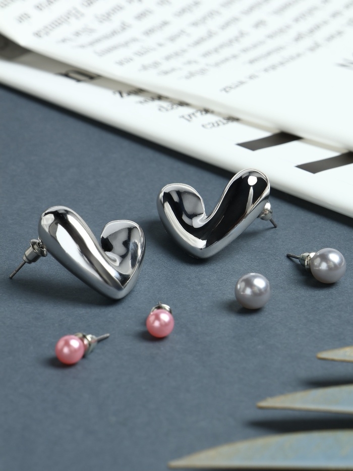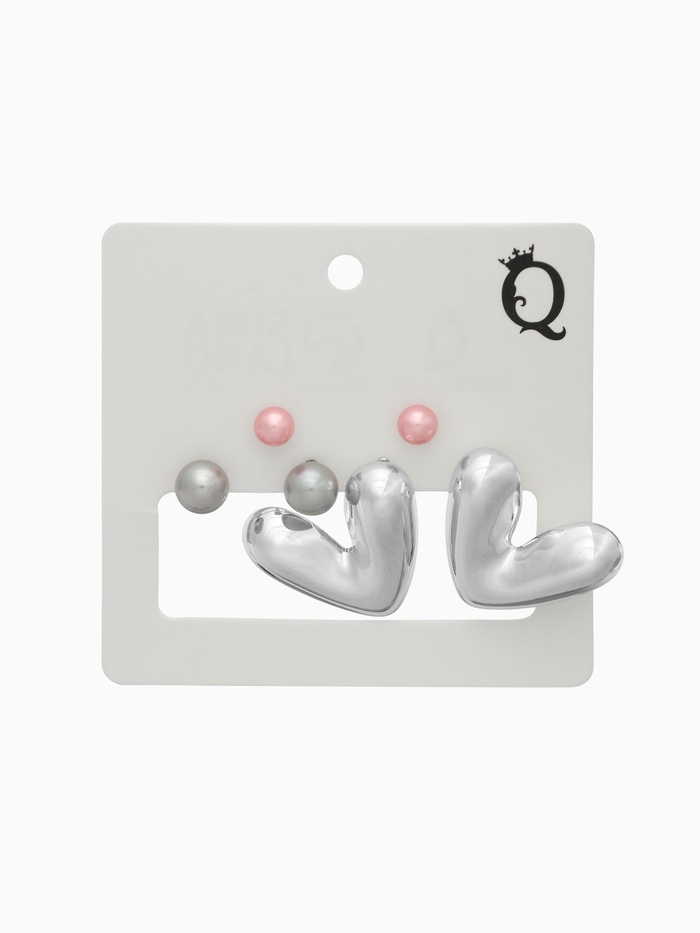 Набор серьги 3 пары «Буквы» любовь, цвет розовый в серебре