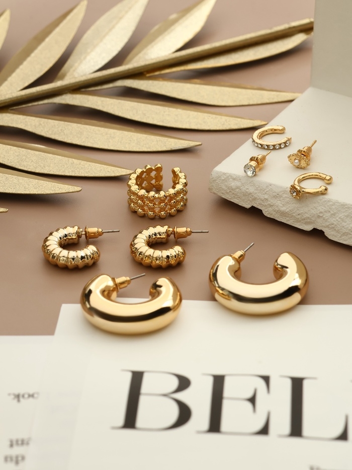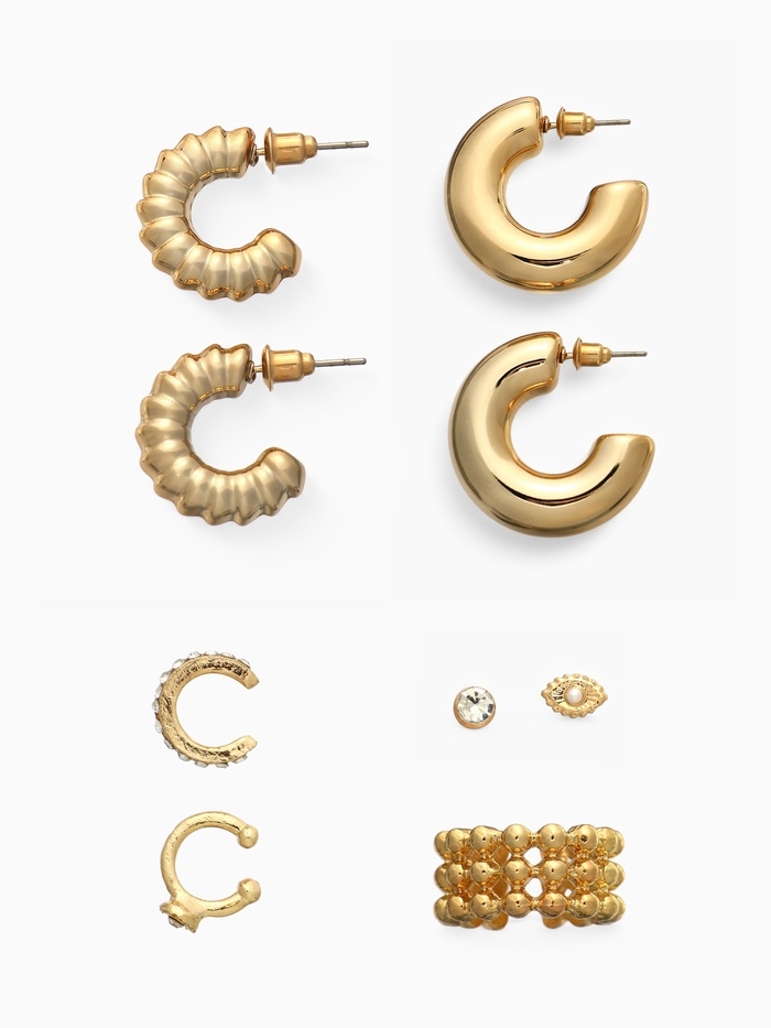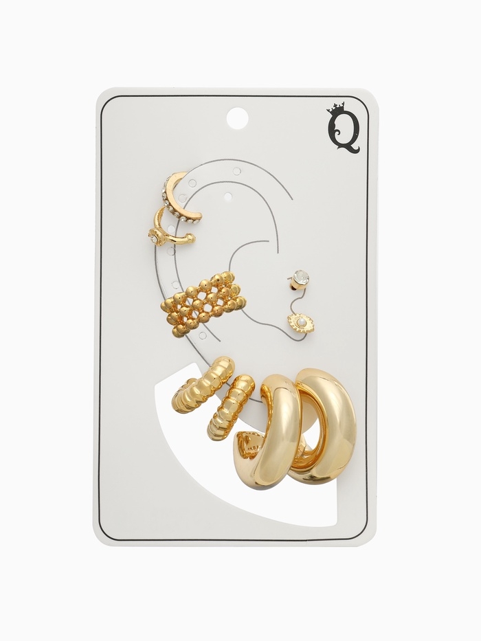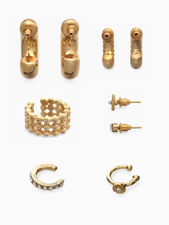 Серьги и каффы «Бублик», набор 9 шт. цвет золото