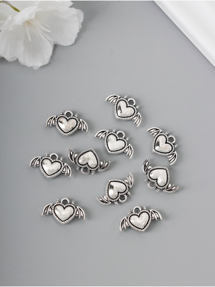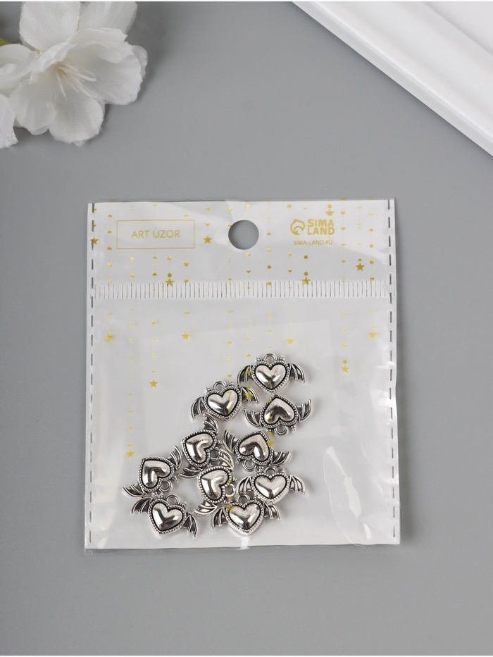Декор для творчества металл "Сердце-чертёнок" серебро набор 10 шт 1,1х1,8х0,2 см
