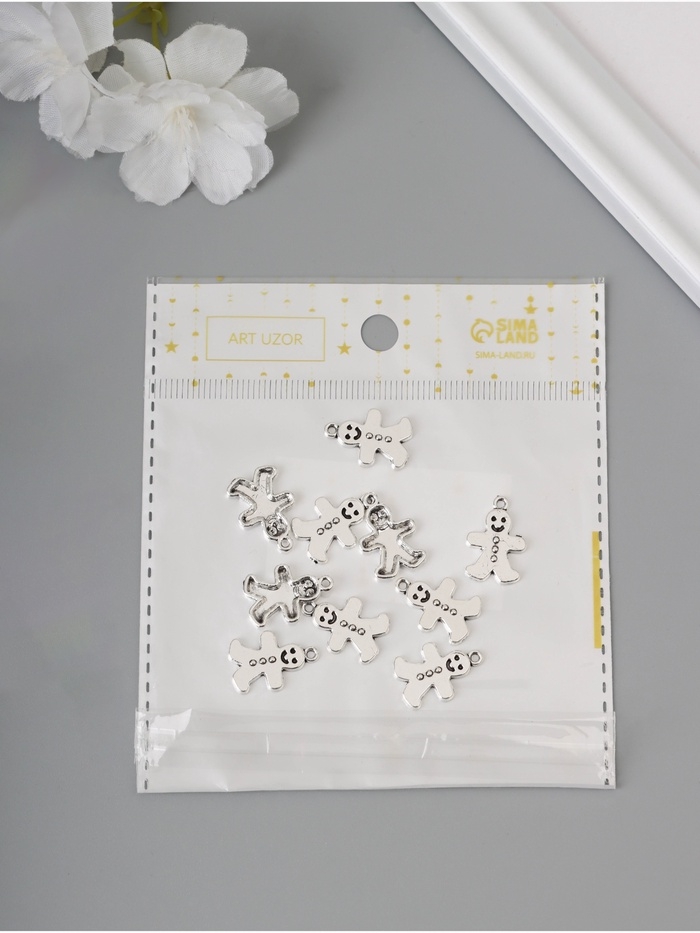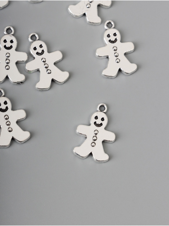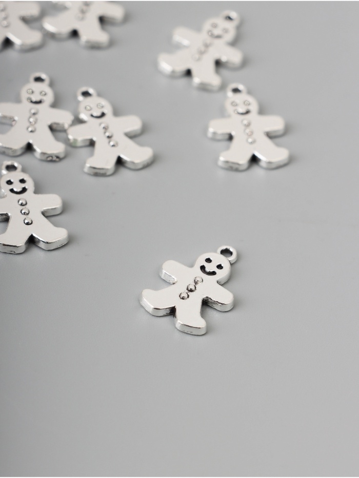 Декор для творчества металл "Имбирный пряник" серебро набор 10 шт 1,9х1,1х0,2 см
