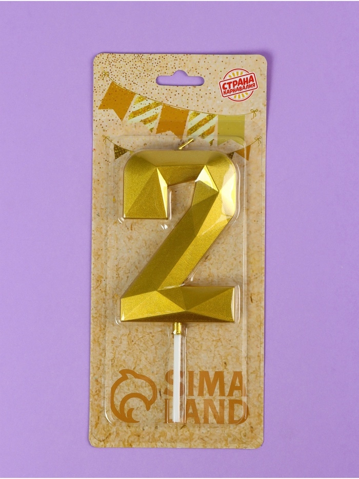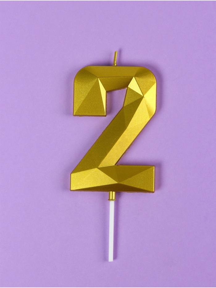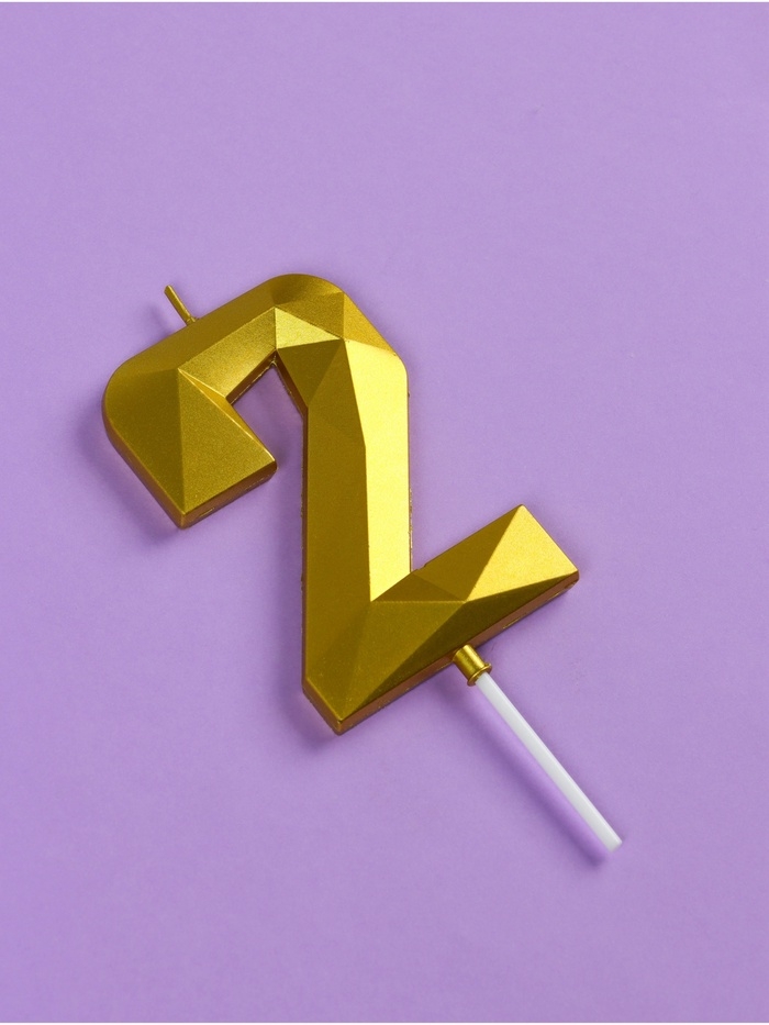Свеча ГИГАНТ в торт на шпажке «Грань», цифра "2", золотая, 9 см