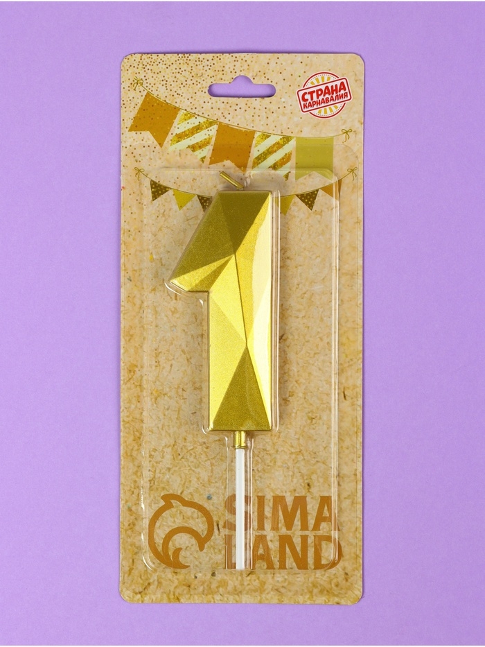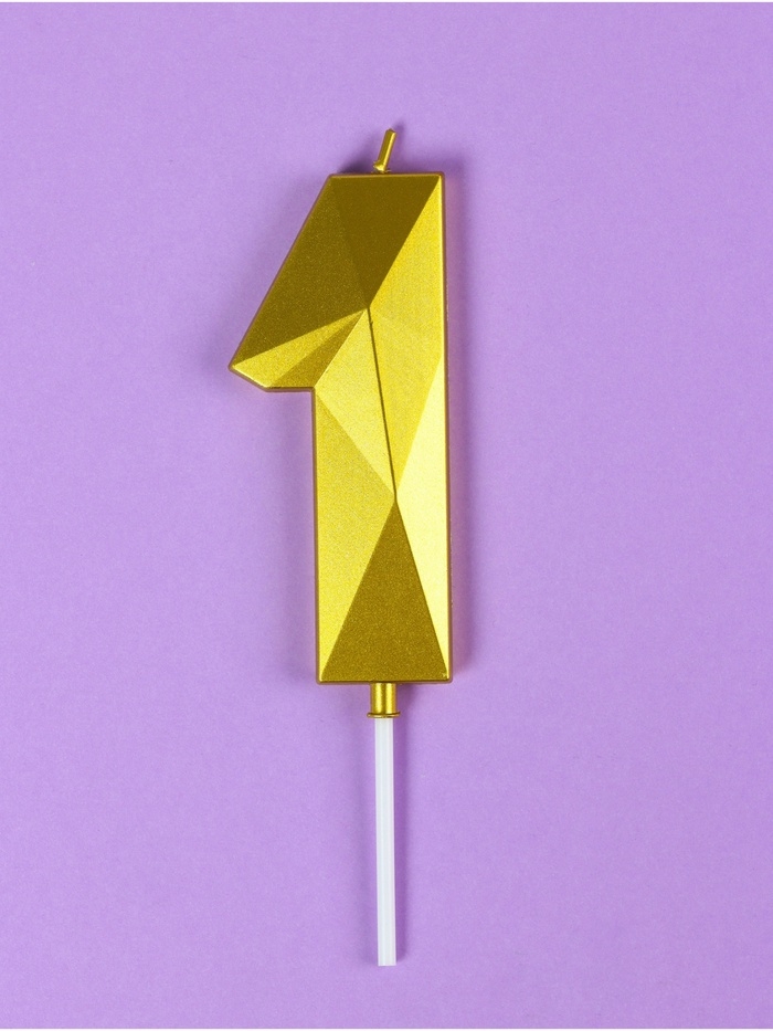 Свеча ГИГАНТ в торт на шпажке «Грань», цифра "1", золотая, 9 см