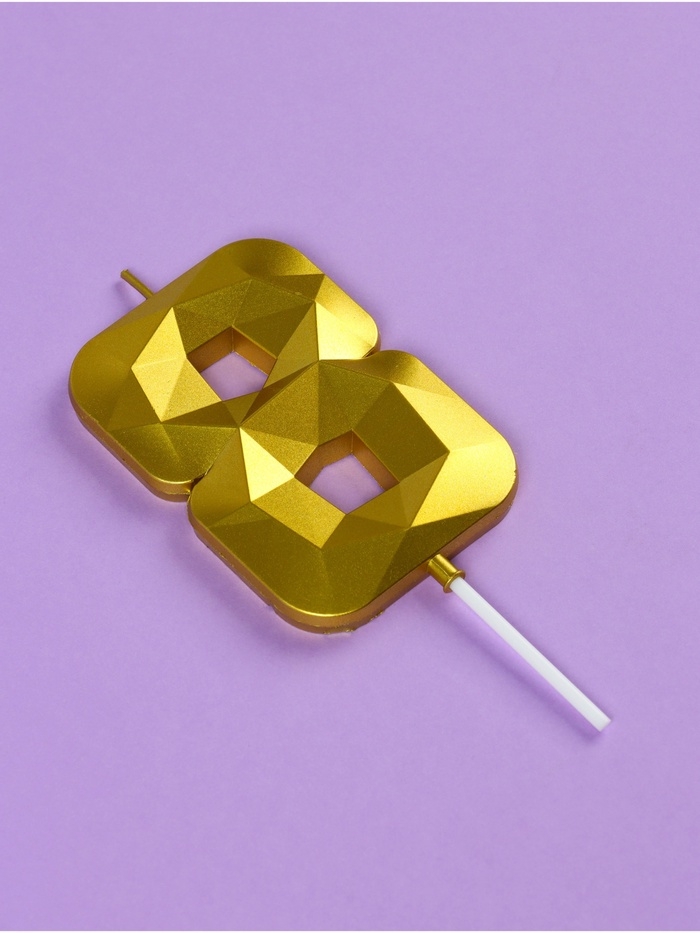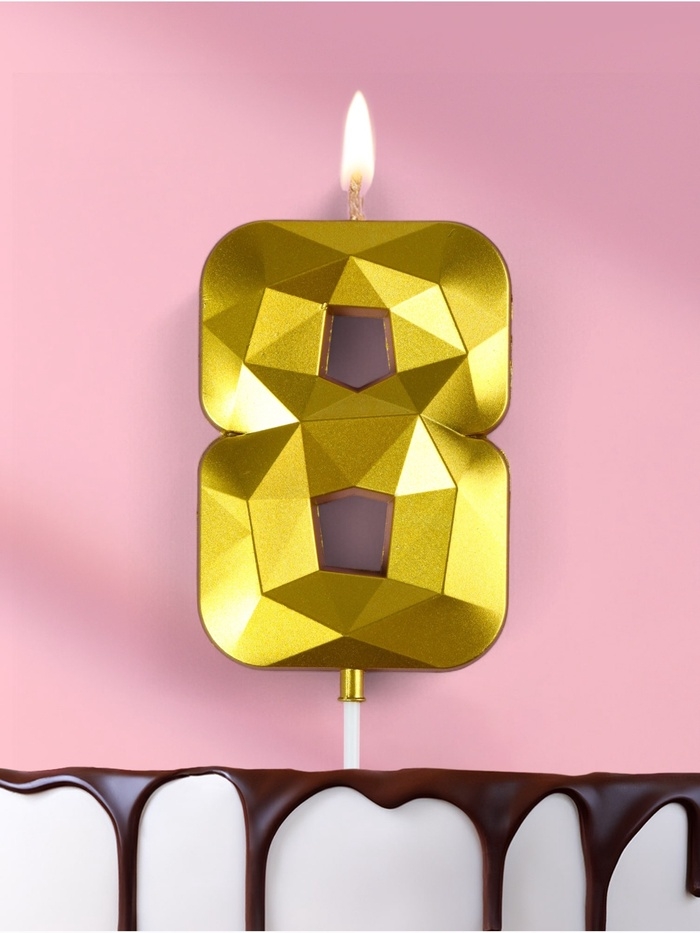 Свеча ГИГАНТ в торт на шпажке «Грань», цифра "8", золотая, 9 см