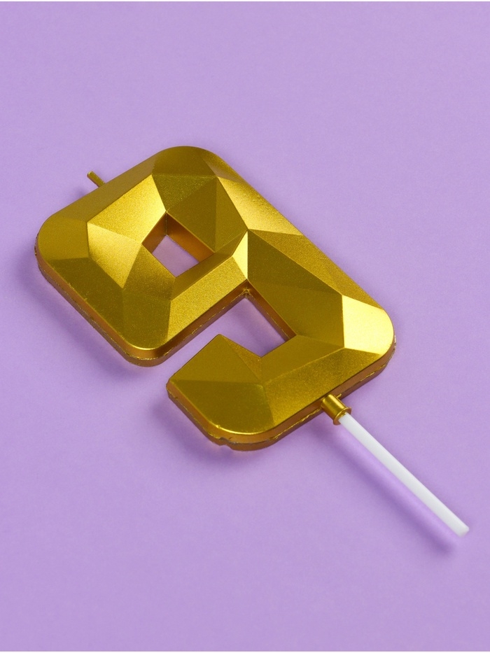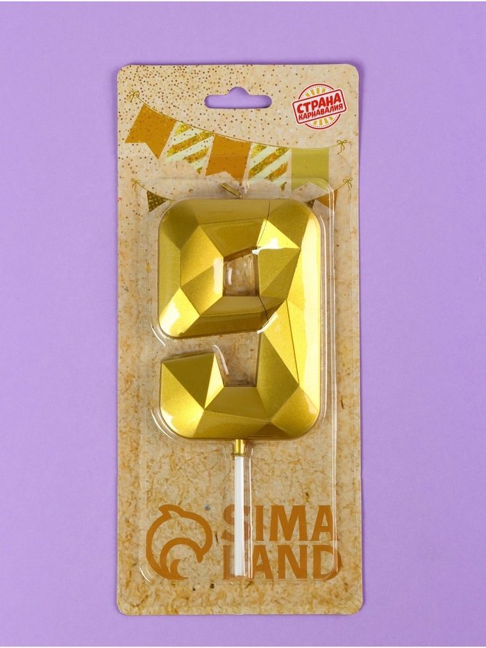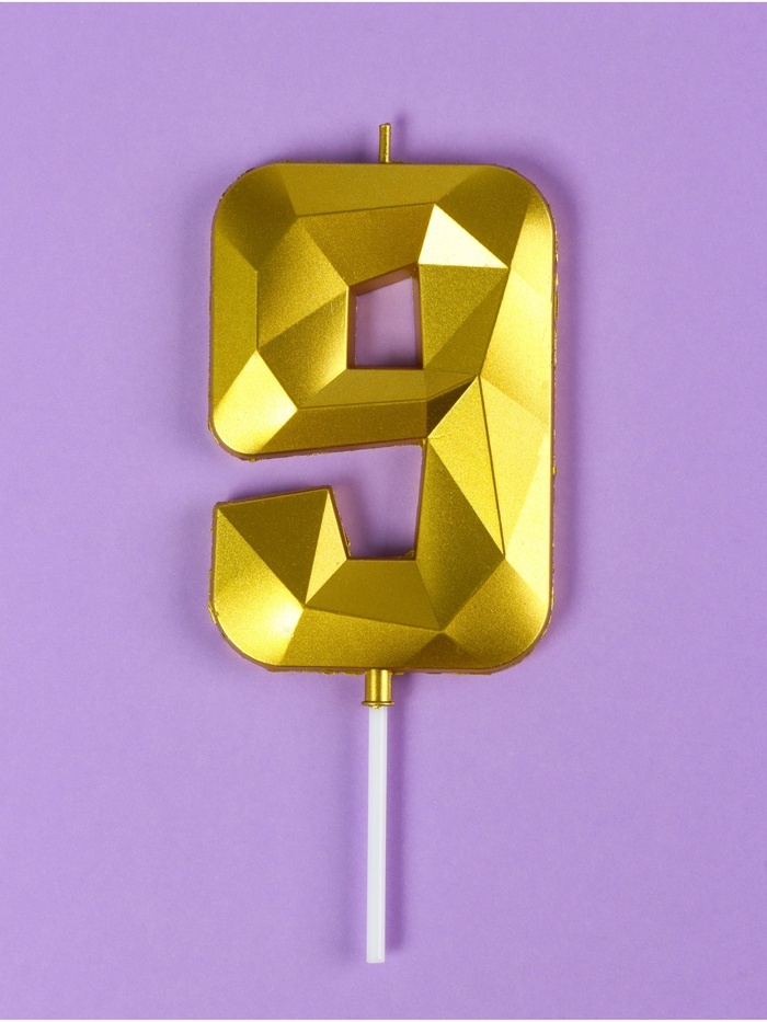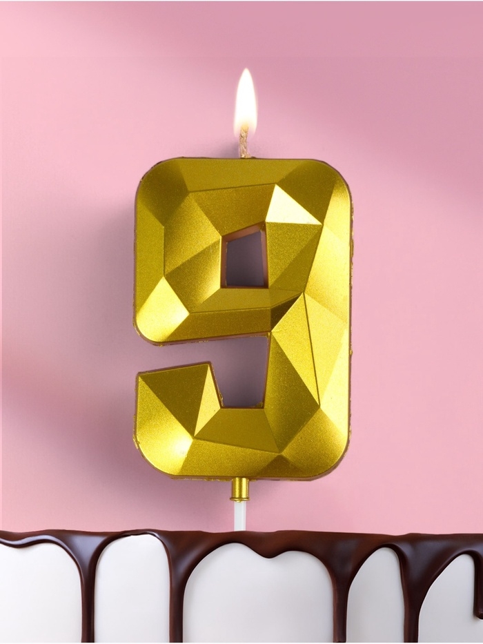 Свеча ГИГАНТ в торт на шпажке «Грань», цифра "9", золотая, 9 см