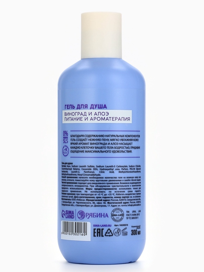 Гель для душа женский, 300 мл, аромат виноград и алоэ, URAL LAB