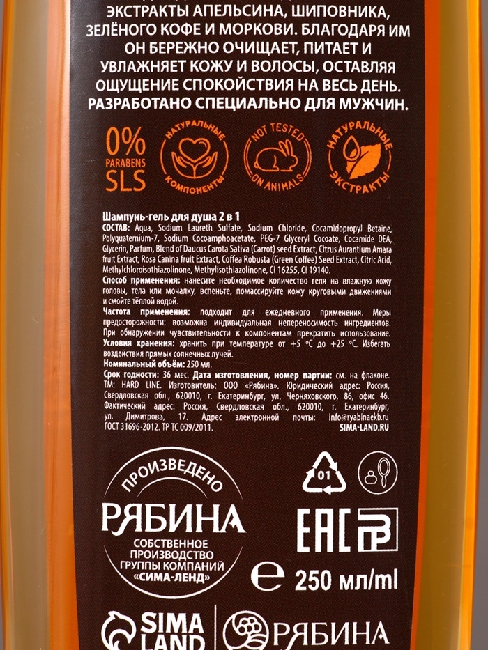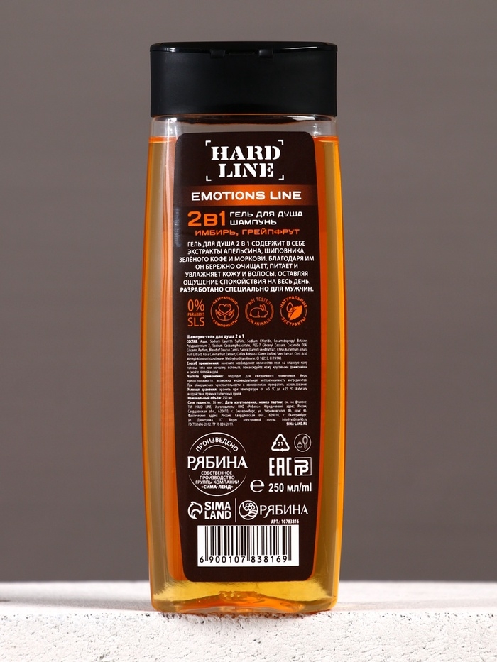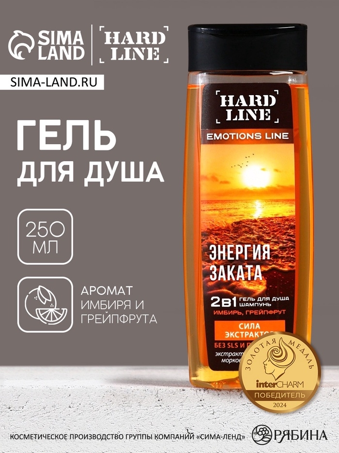 Гель для душа и шампунь 2 в 1 «Сила экстрактов», 250 мл, аромат имбирь и грейпфрут, HARD LINE