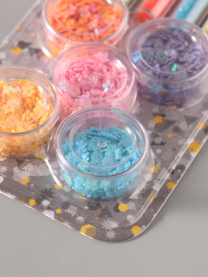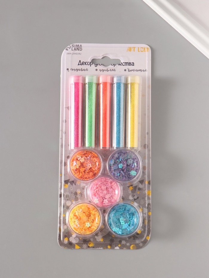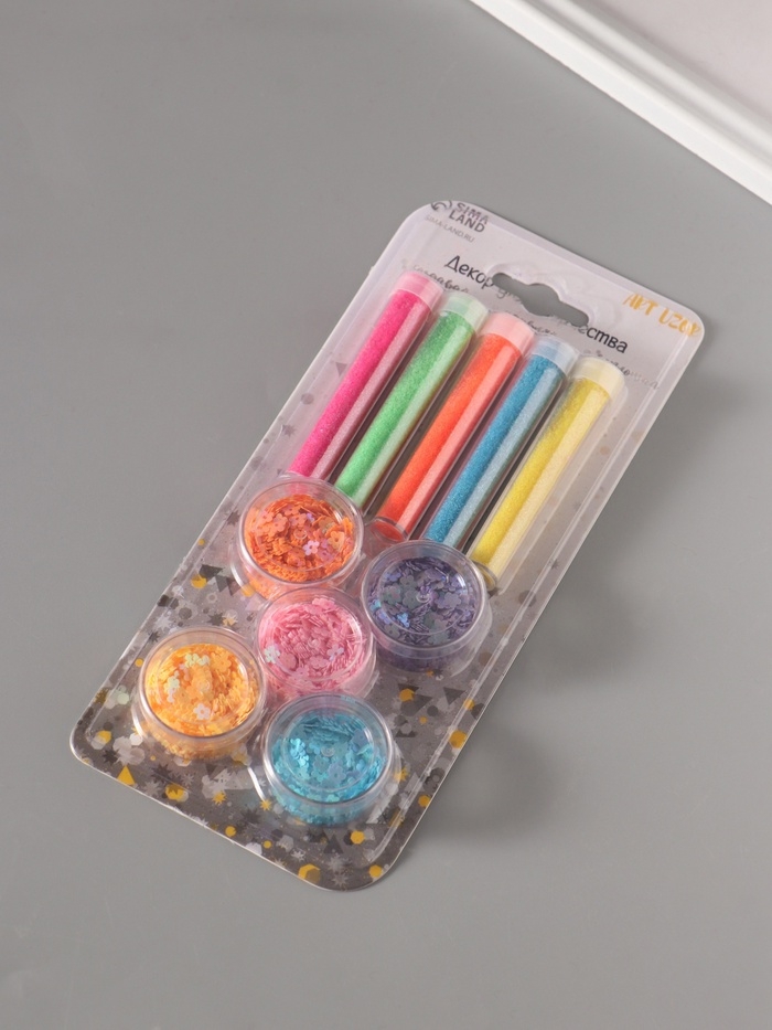 Глиттер "Пудра и цветочки" неон набор 5х6 гр и 5х5 гр 21,4х9,3 см