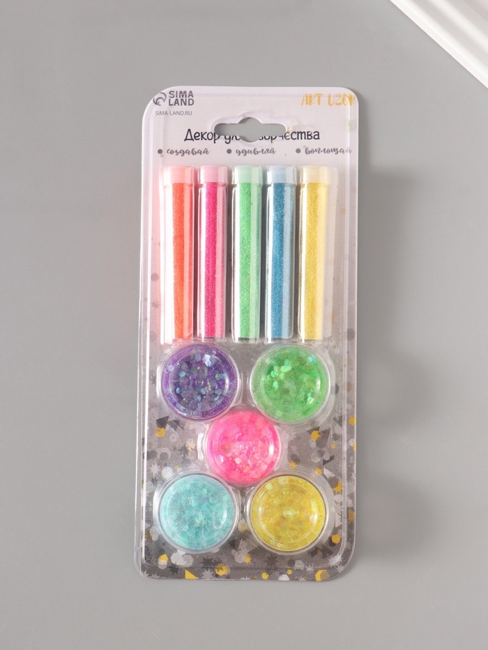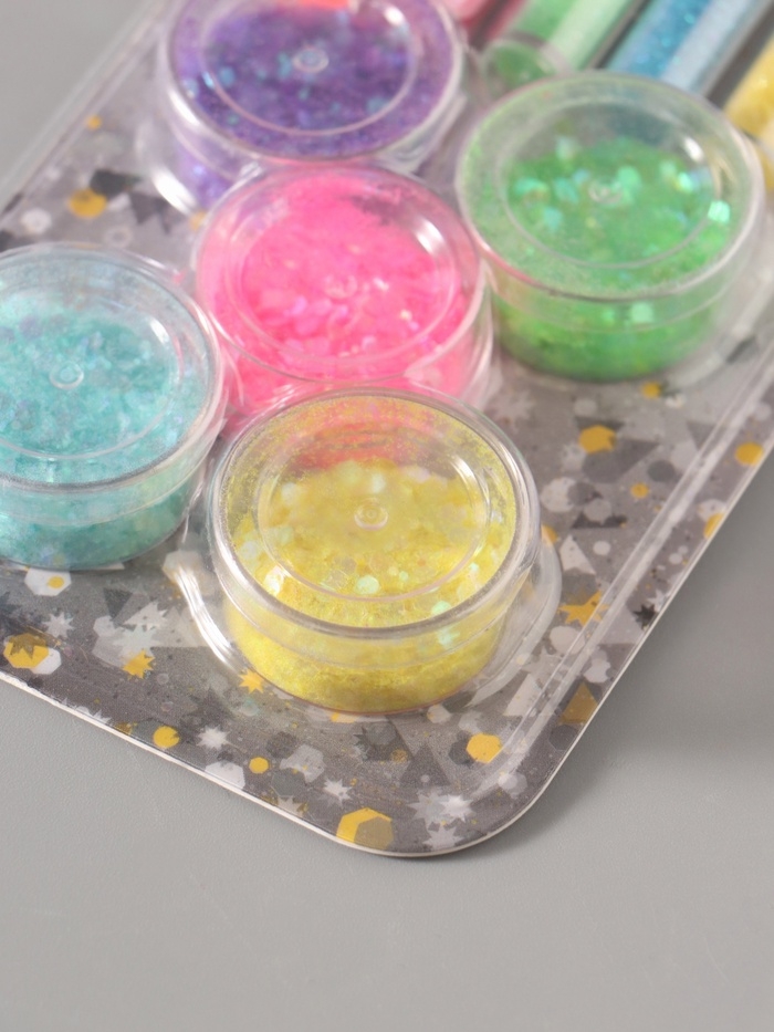 Глиттер "Пудра и шестигранники" неон набор 5х6 гр и 5х5 гр 21,4х9,3 см