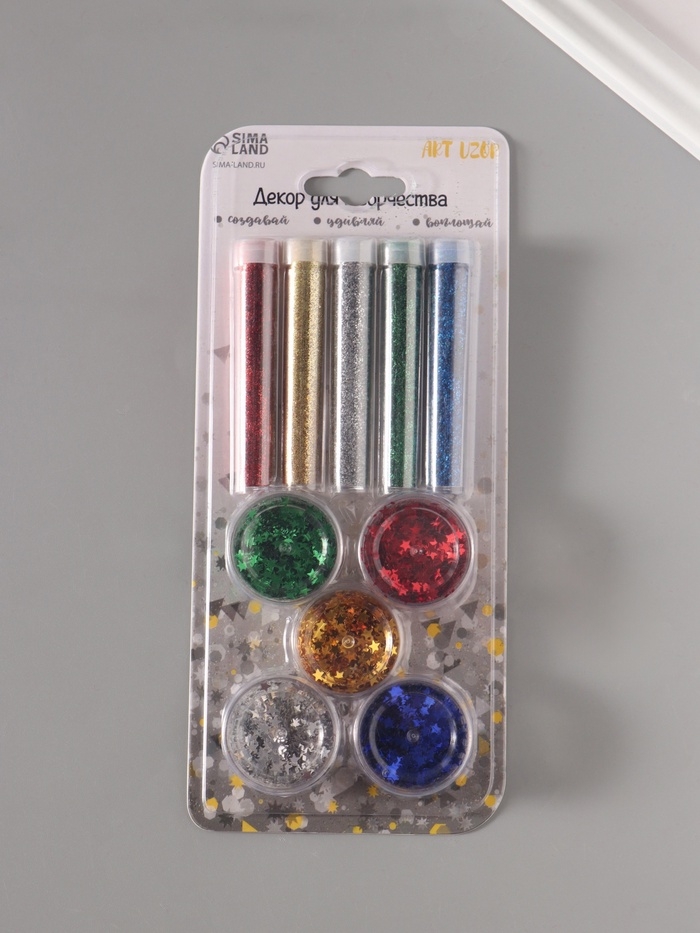 Глиттер "Пудра и звёздочки" металлик набор 5х6 гр и 5х5 гр 21,4х9,3 см